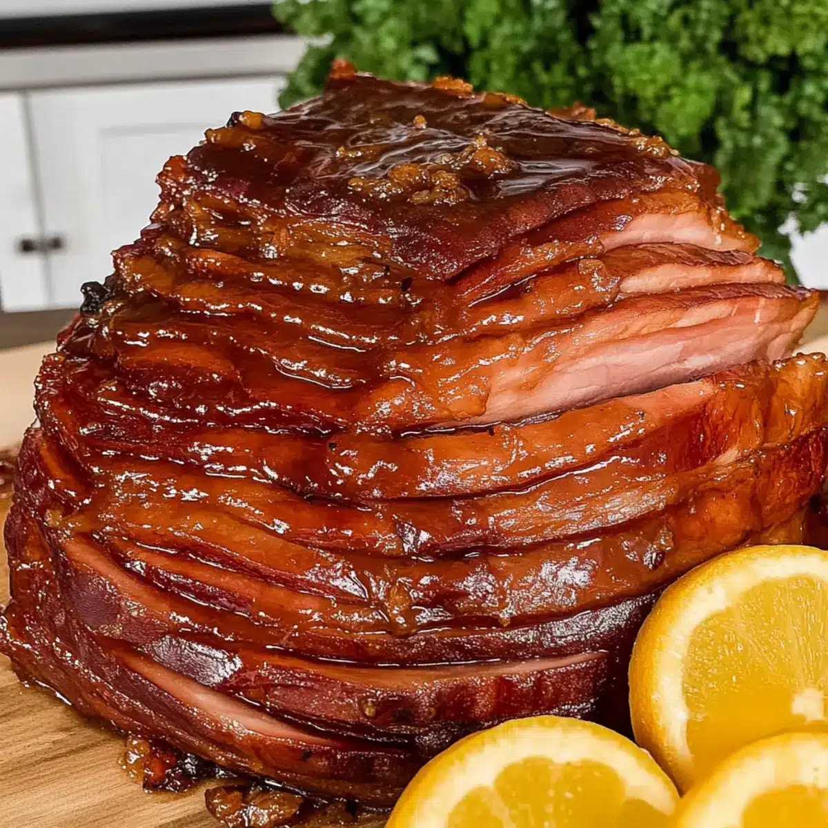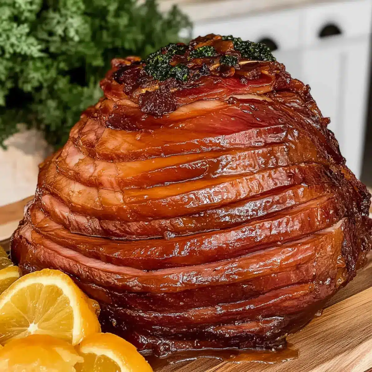 Nutty Finish: Top the glazed ham with chopped pecans or walnuts before serving. As they toast, they’ll add a delightful crunch and nutty flavor that enhances the dish’s texture beautifully.