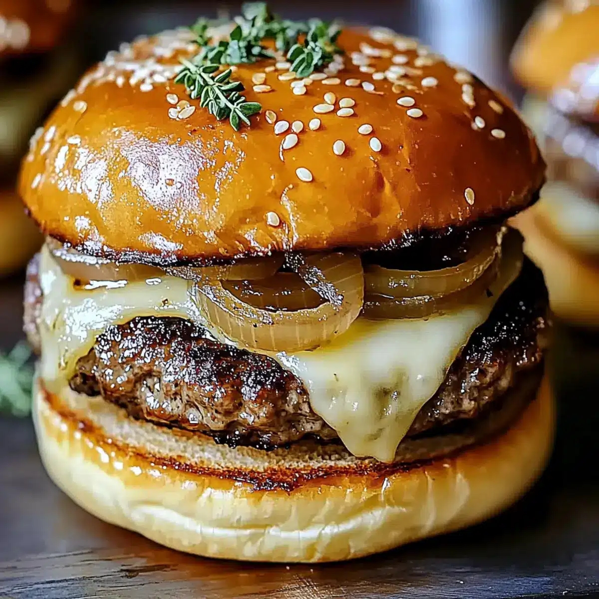 Savory Juicy French Onion Burgers with Gruyère Delight