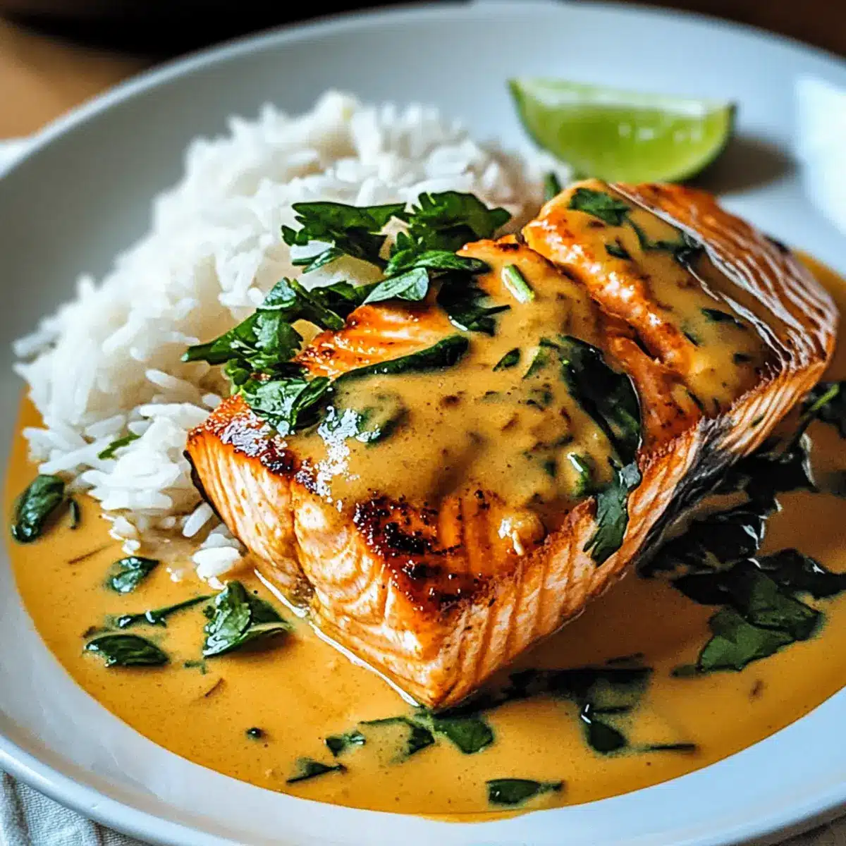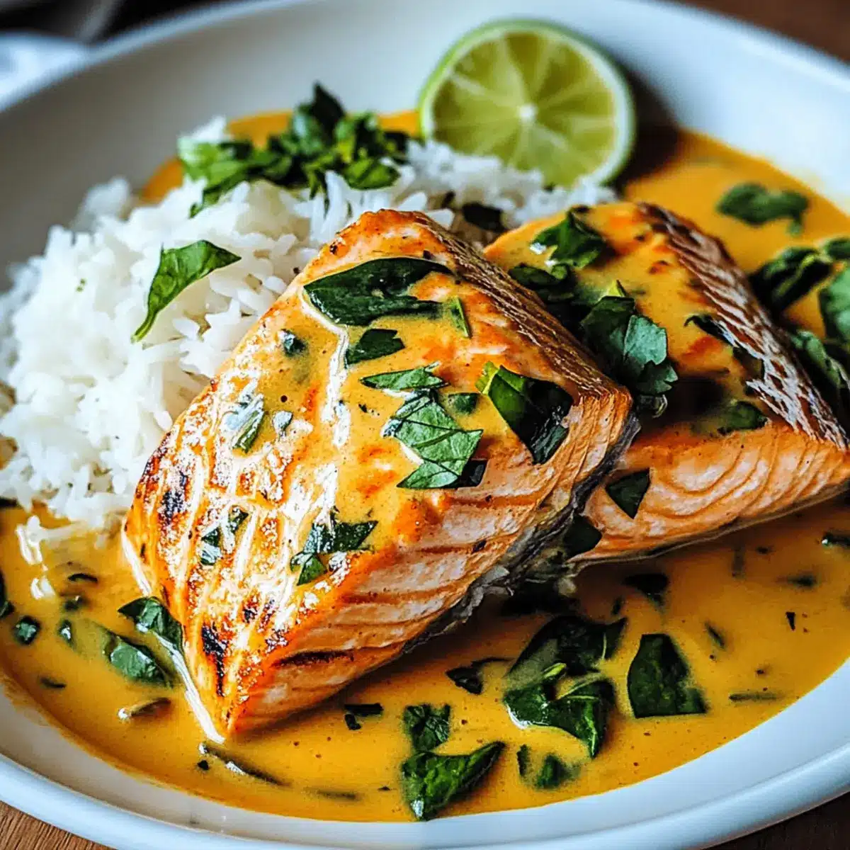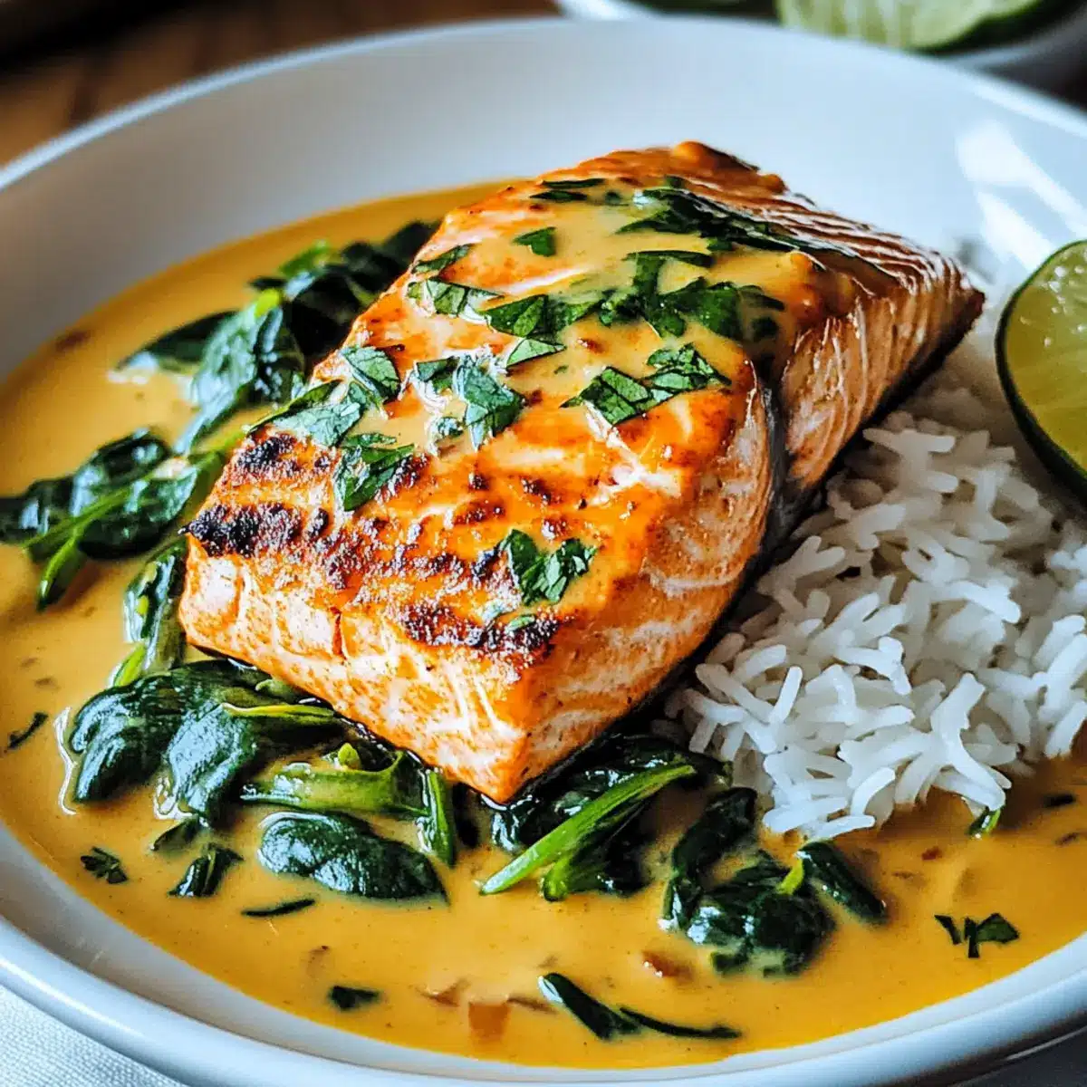 Comforting and delightful, this dish brings tropical flavors right to your dinner table. Customization is key—tweak spice levels and toss in your favorite seasonal veggies for a personal touch. Quick to prepare, it’s perfect for busy weeknights or special gatherings. Healthy protein-packed salmon pairs beautifully with the creamy coconut sauce, ensuring every bite is satisfying. Versatile, it shines with a side of jasmine rice or warm naan, creating a crowd-pleaser that everyone will love!