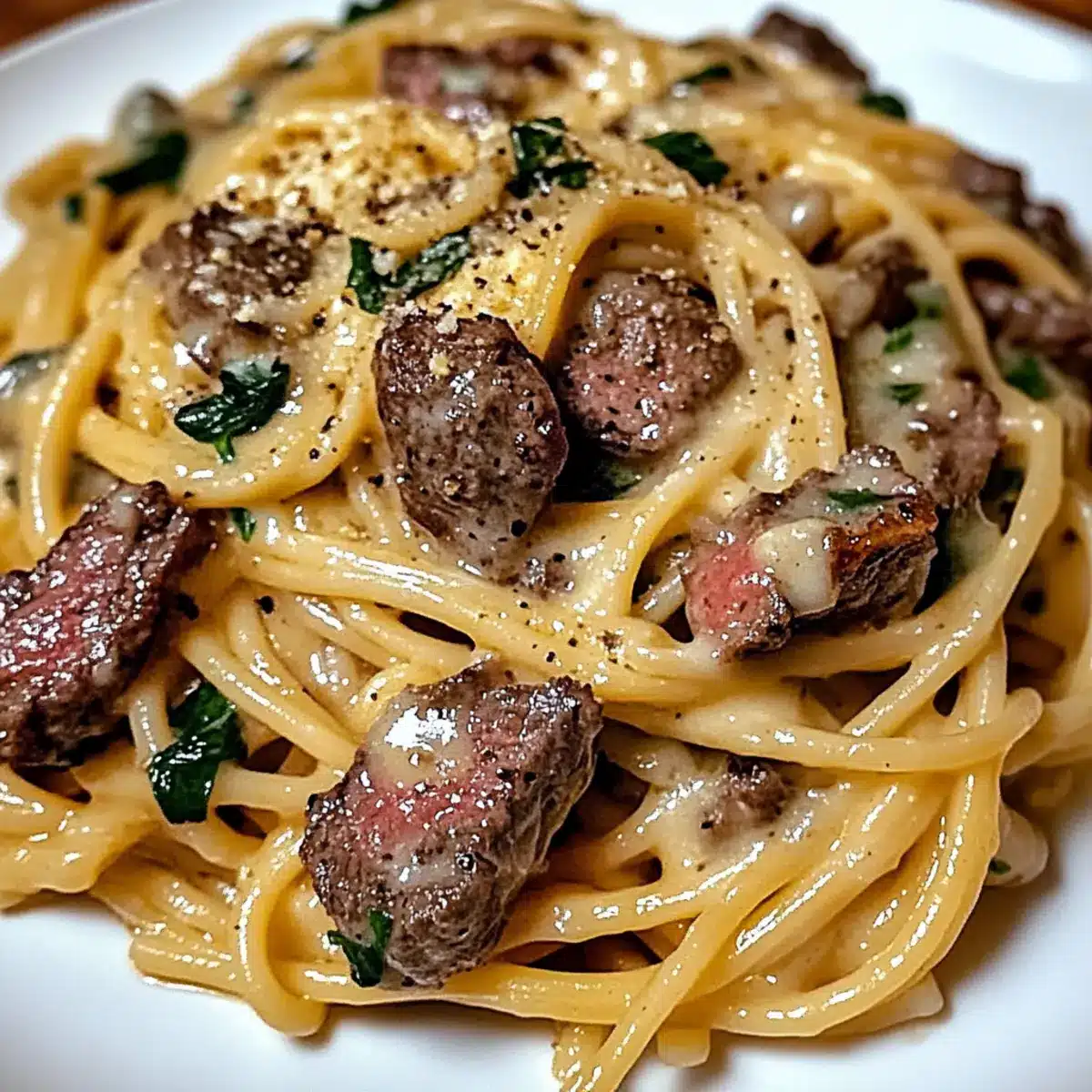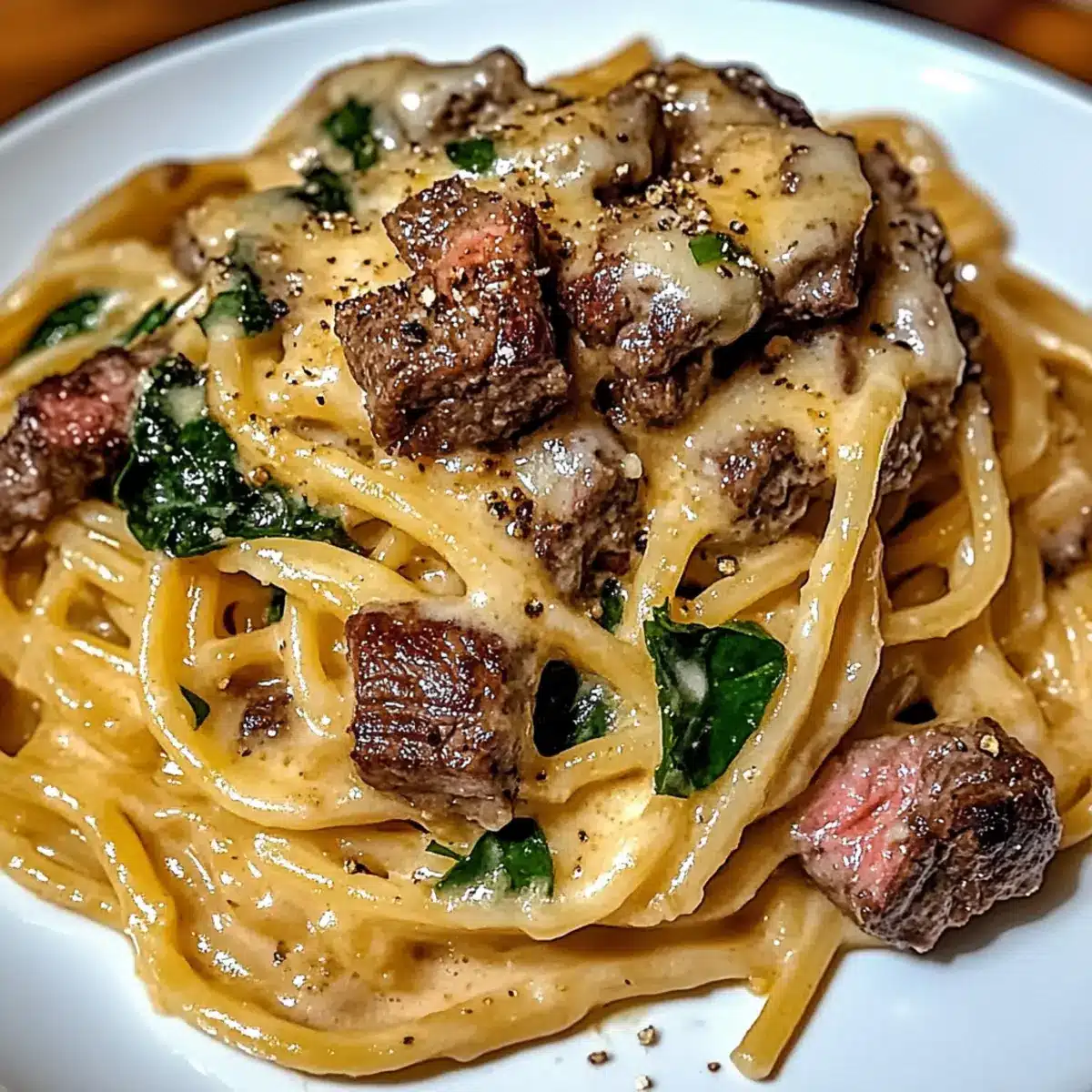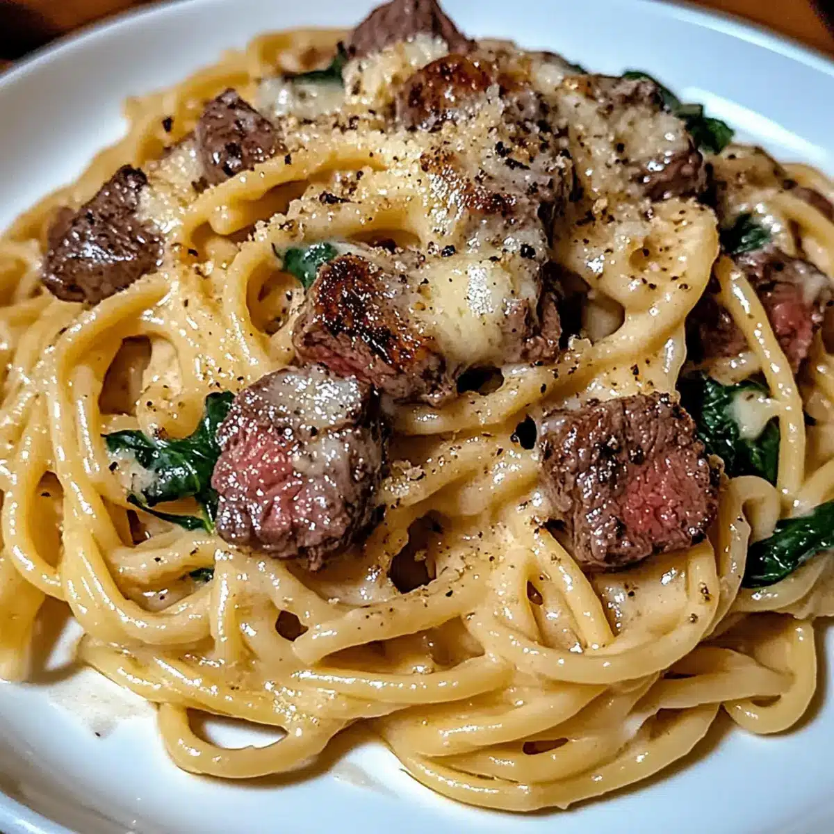Creamy Cowboy Butter Linguine with Steak Bites & Spinach Recipe That Delights