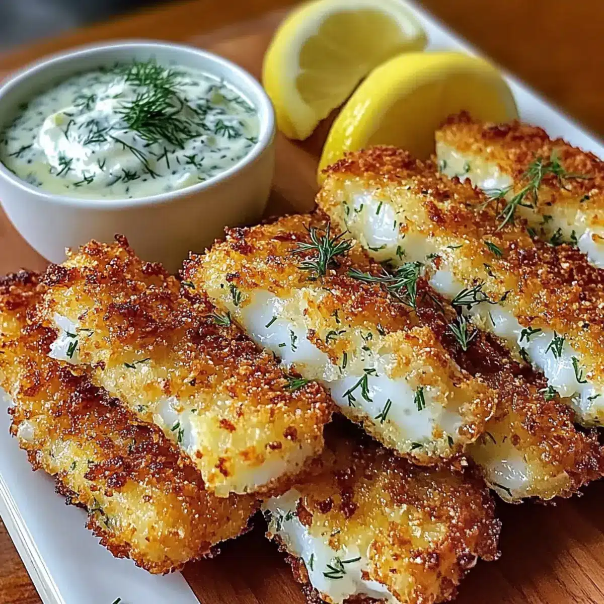 Flavor-Packed: A delightful coating of panko mixed with smoky paprika and fresh lemon zest elevates each bite, pairing beautifully with a tangy homemade tartar sauce.