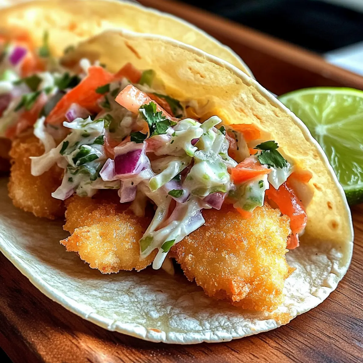 Serve your crispy fish tacos with fresh lime wedges on the side for an extra splash of citrus. This not only elevates the dish but also allows your guests to customize their tacos to their preference. Gather around the table and dive into these delicious tacos, celebrating the wonderful textures and flavors that make them a standout meal at any gathering!