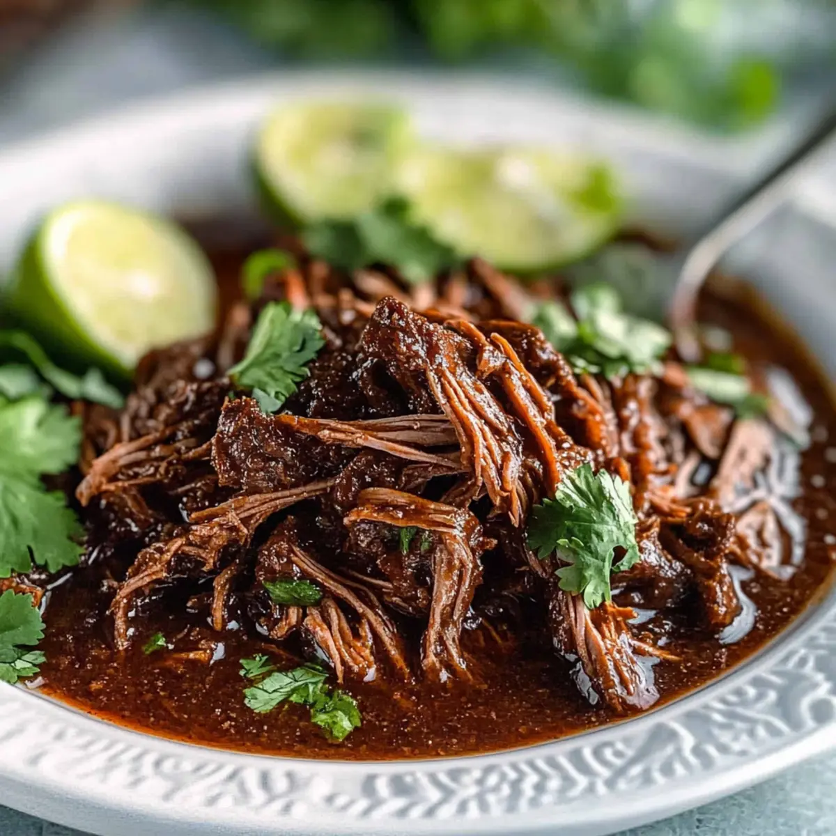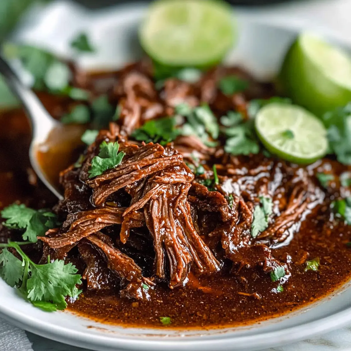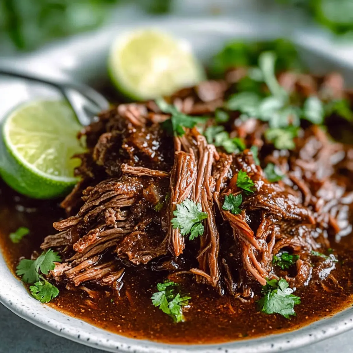 Squeeze the juice of one fresh lime over the shredded beef and give it a gentle toss to incorporate the acidity. Finally, sprinkle chopped cilantro on top for a burst of freshness. This bright finish elevates your mouthwatering Crockpot Barbacoa Beef, rounding out the dish beautifully before you serve it.