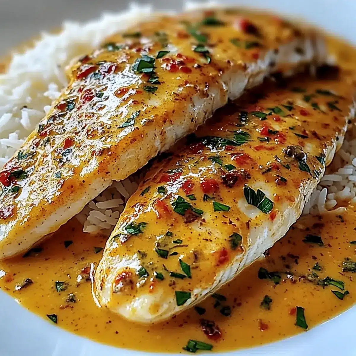 Once the fish is cooked, stir in 2 tablespoons of freshly chopped parsley to brighten the dish. Serve the luscious Red Snapper with Creamy Creole Sauce immediately over cooked rice, garnishing with additional parsley if you like. Enjoy the vibrant flavors and satisfying textures as you dig into this delightful culinary treat!