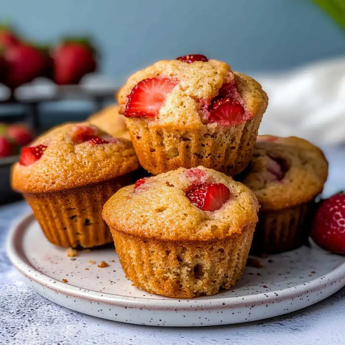 Absolutely! When choosing strawberries, look for bright red berries with no dark spots or signs of mold. They should be firm to the touch and fragrant—this indicates freshness and sweetness. If you’re opting for frozen strawberries, thaw and drain them well before adding to the batter to keep the muffins from becoming soggy.